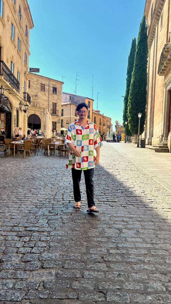 Camisa manga curta com nossa estampa símbolos quadriculados, exclusiva da, coleção “Bem, Brasil”